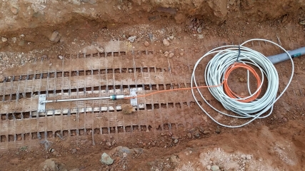 O extensômetro elétrico de geogrelha é utilizado para monitorar a deformação da geogrelha, normalmente instalada na base de aterros sobre solos moles ou em aterros ou muros reforçados.